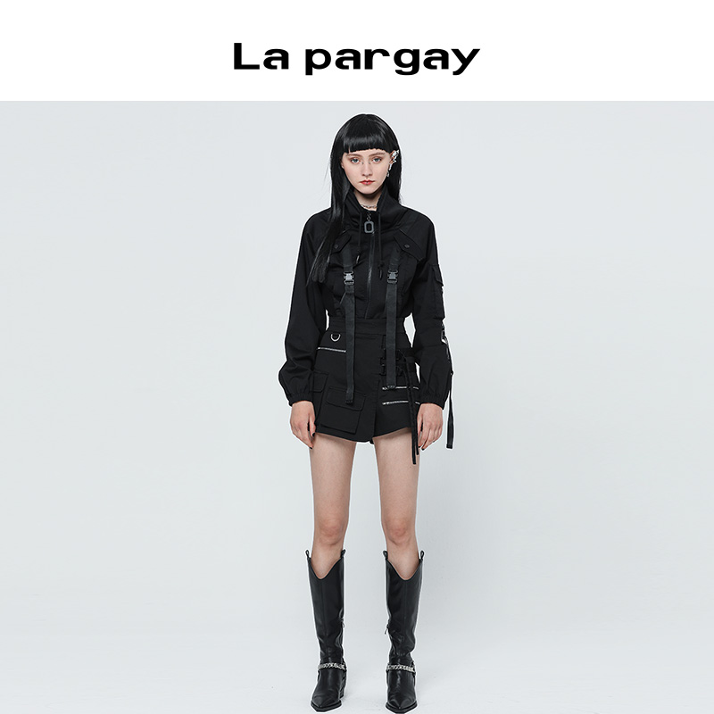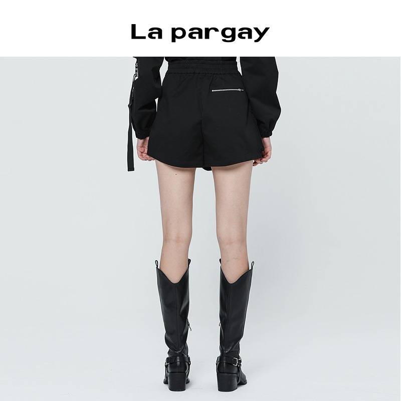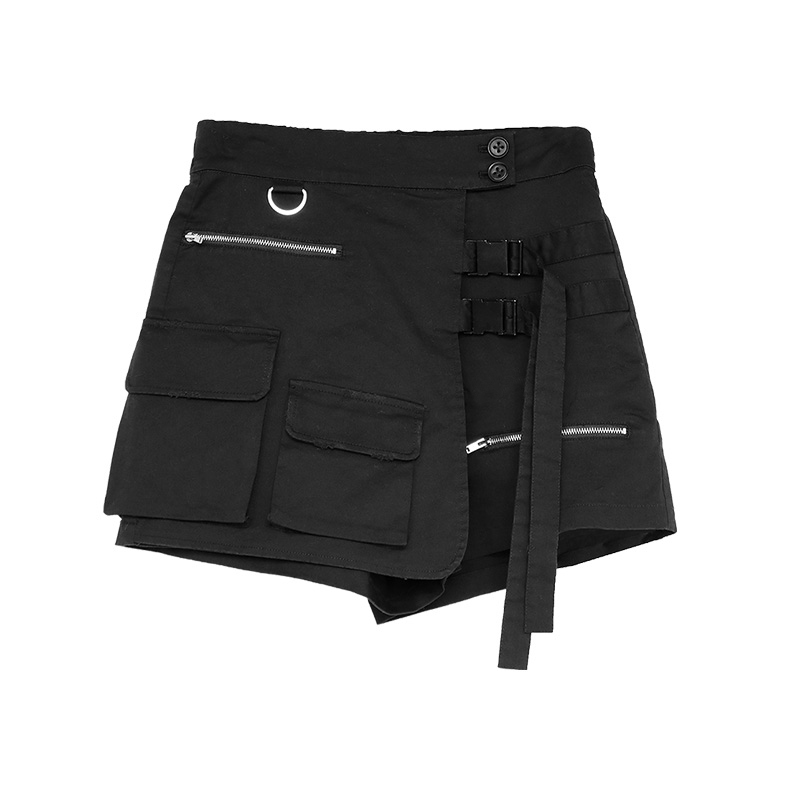 新款 饰短裙裤 暗黑个性 黑色不对称拉链装 潮搭短裤 纳帕佳2025年春季