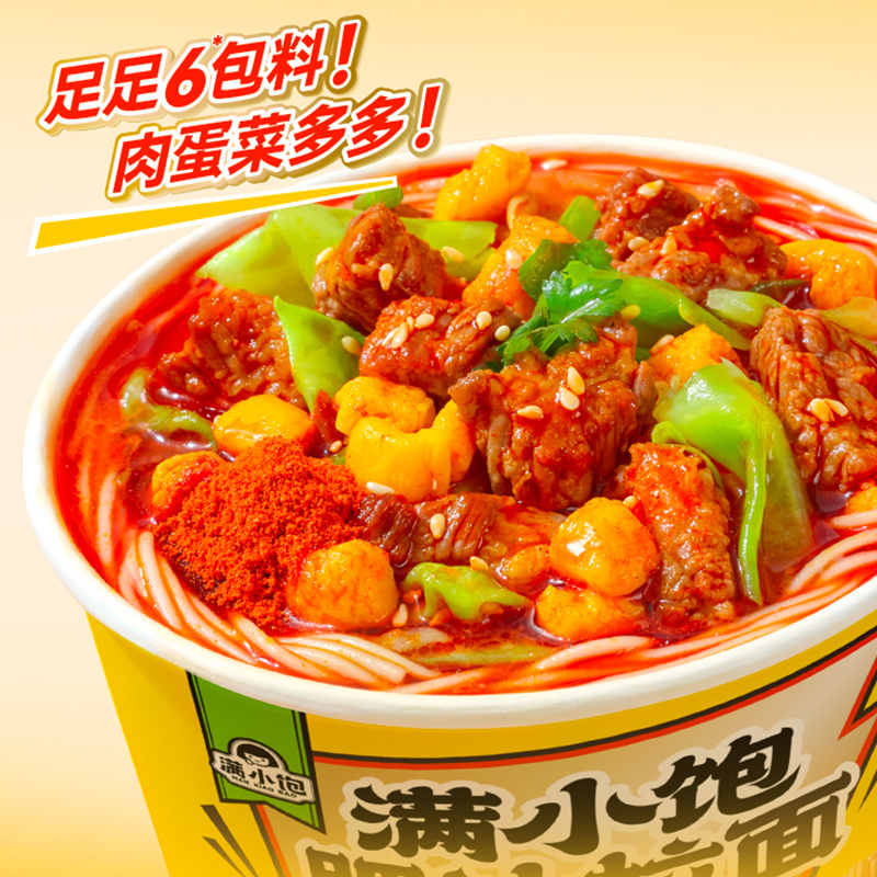 满小饱肥汁拉面6杯桶装 免煮冲泡酸辣方便面速食泡面米线宿舍夜宵