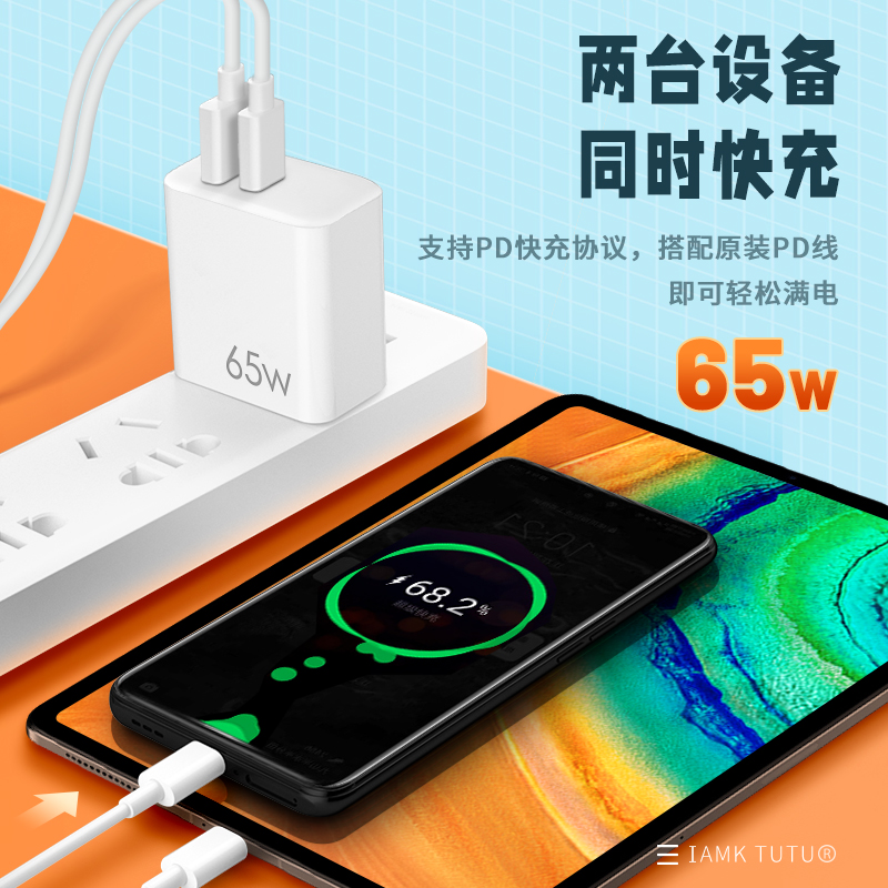 pd插头数据线45w套装 图拉斯小冰块适用苹果17充电器头iphone16promax快充头正品 usbc手机双40W papi酱同款