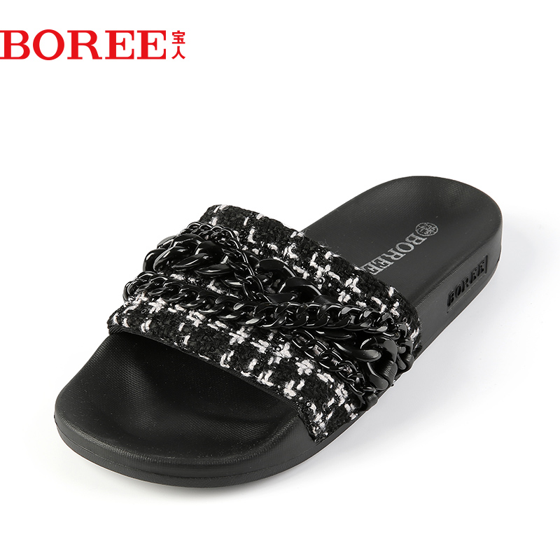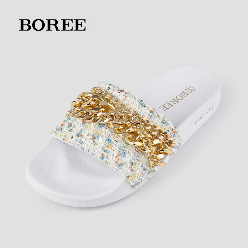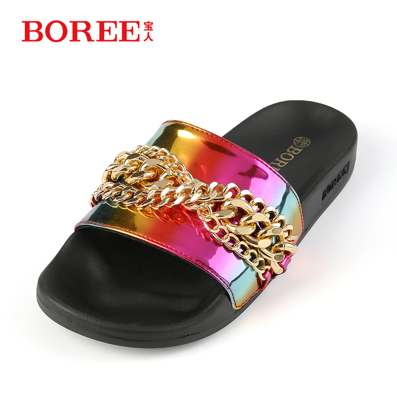 小香风凉拖时尚 女2025年夏季 链条炫彩外穿一字拖 宝人拖鞋 Boree