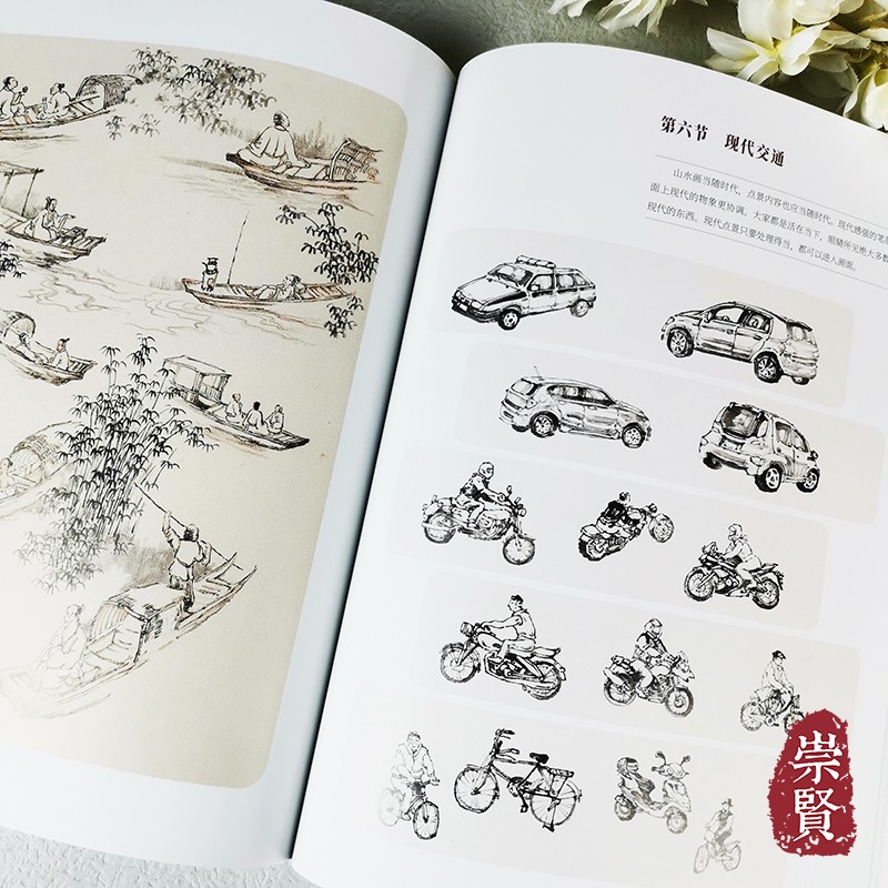 案头必备中国画技法教程 人物动态动物意趣路桥船艇居民宅院画法步骤清晰附免费教学视频陈祥法著安徽美术 点景画法