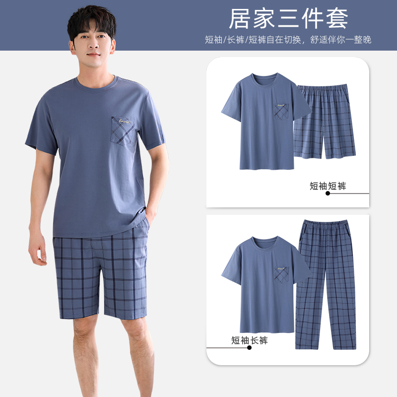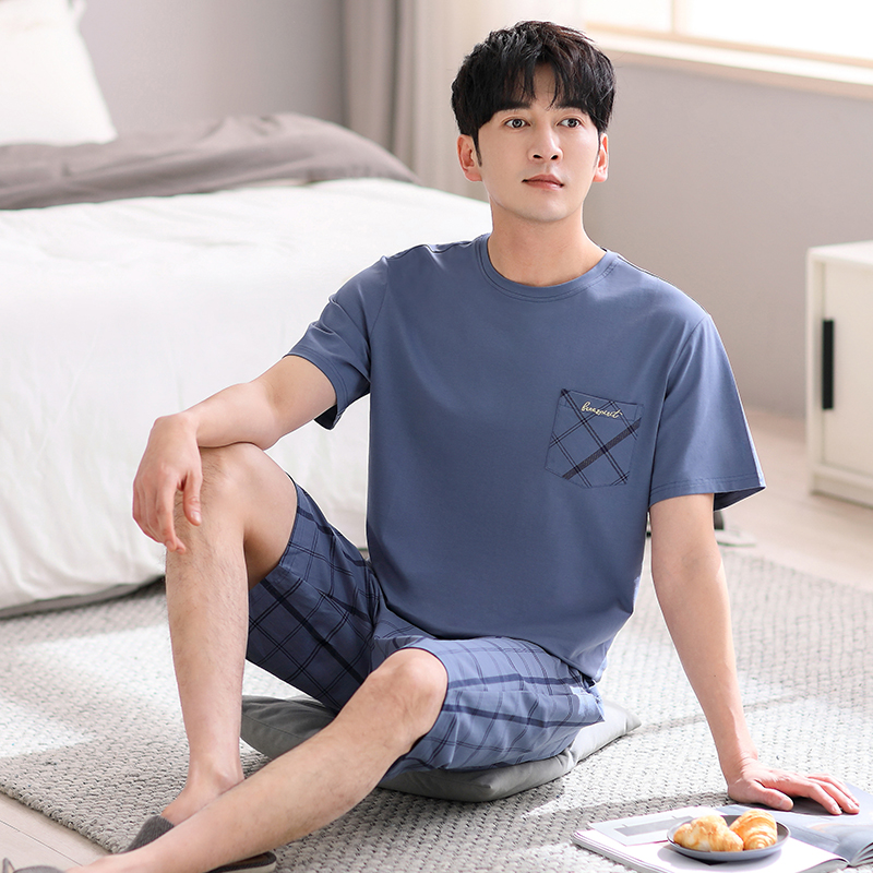 短袖 宽松休闲大码 套装 青年男款 全棉家居服 夏季 芬腾睡衣男纯棉开衫