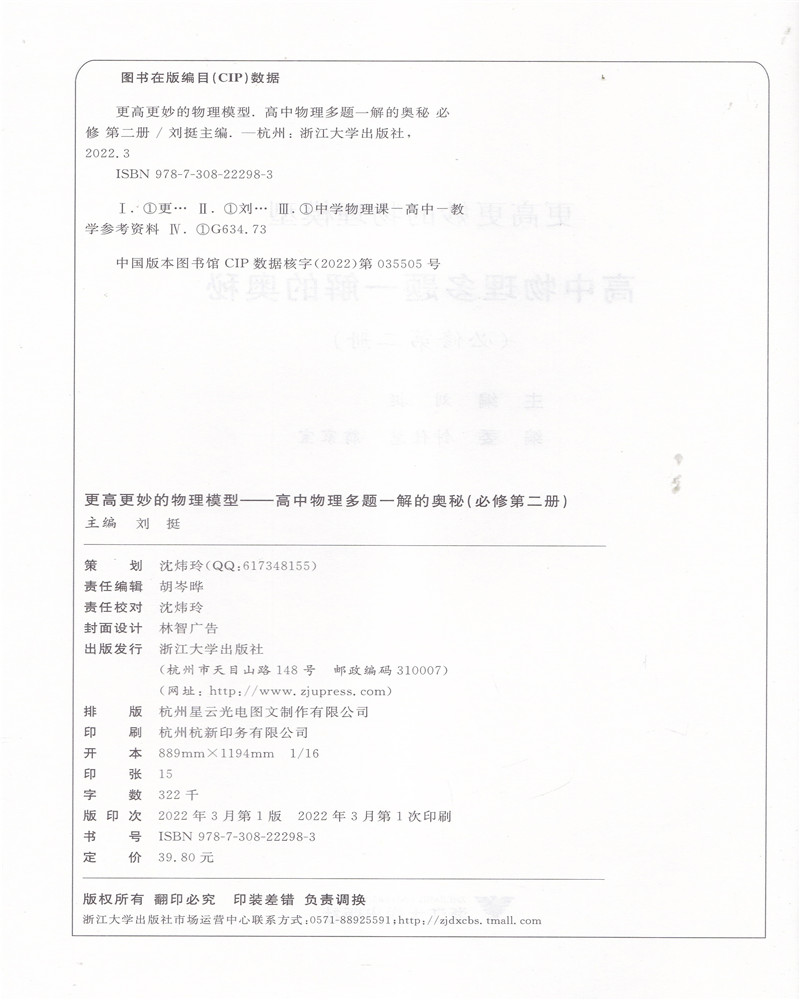 主编 习题详解视频 物理模型 免费赠配套课堂视频 浙大优学 刘挺 必修第二册 奥秘 高中物理多题一解 更高更妙 2022年