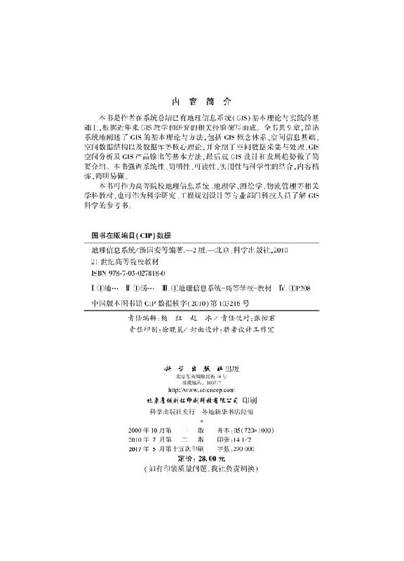 社 地理信息系统 科学出版 汤国安 9787030278180 第二版