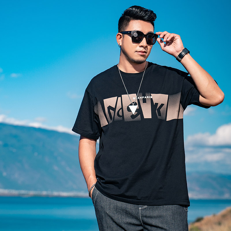 潮胖子短袖 GxxH大码 新款 2025夏季 T恤男加肥加大宽松肥佬体恤 男装