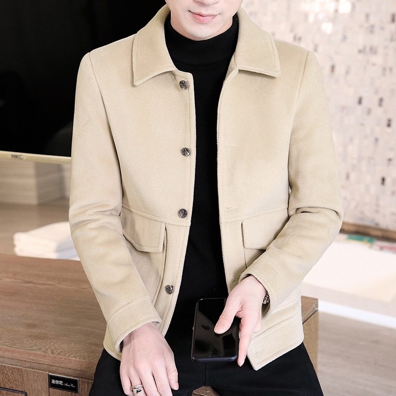 毛呢风衣休闲翻领男装 男士 短款 潮流上衣修身 外套 呢子夹克春秋新款