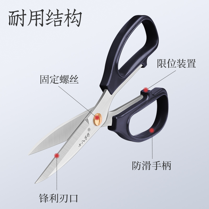 十八子作剪刀家用不锈钢裁缝剪线头剪纸办公专用尖头厨房多功能剪
