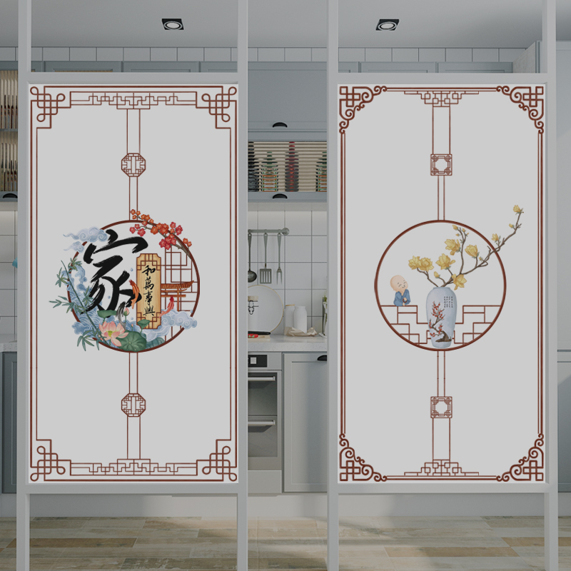 透明彩色静电玻璃贴纸阳台厨房门防撞装 饰窗户贴膜半遮挡隐私窗贴