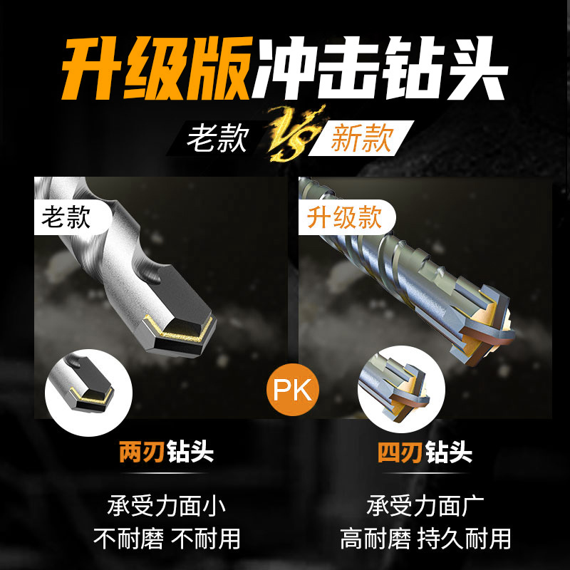 十字电锤冲击钻头圆柄混凝土墙打孔四刃方柄转头打瓷砖 专用钻头