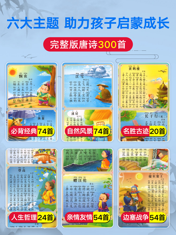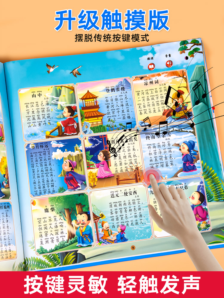 全集幼儿园3 幼儿早教点读发声书唐诗300首正版 6岁儿童古诗点读书益智绘本宝宝诗词启蒙绘本有声点读机 唐诗三百首完整版 会说话