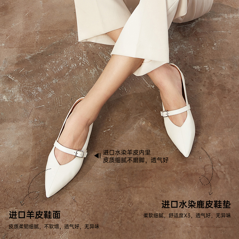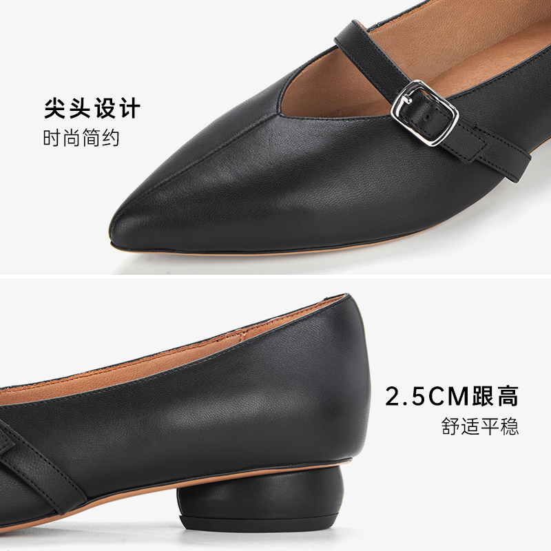 羊皮玛丽珍浅口女红色单鞋 百思图莫奈花园25秋新款 叶一茜同款
