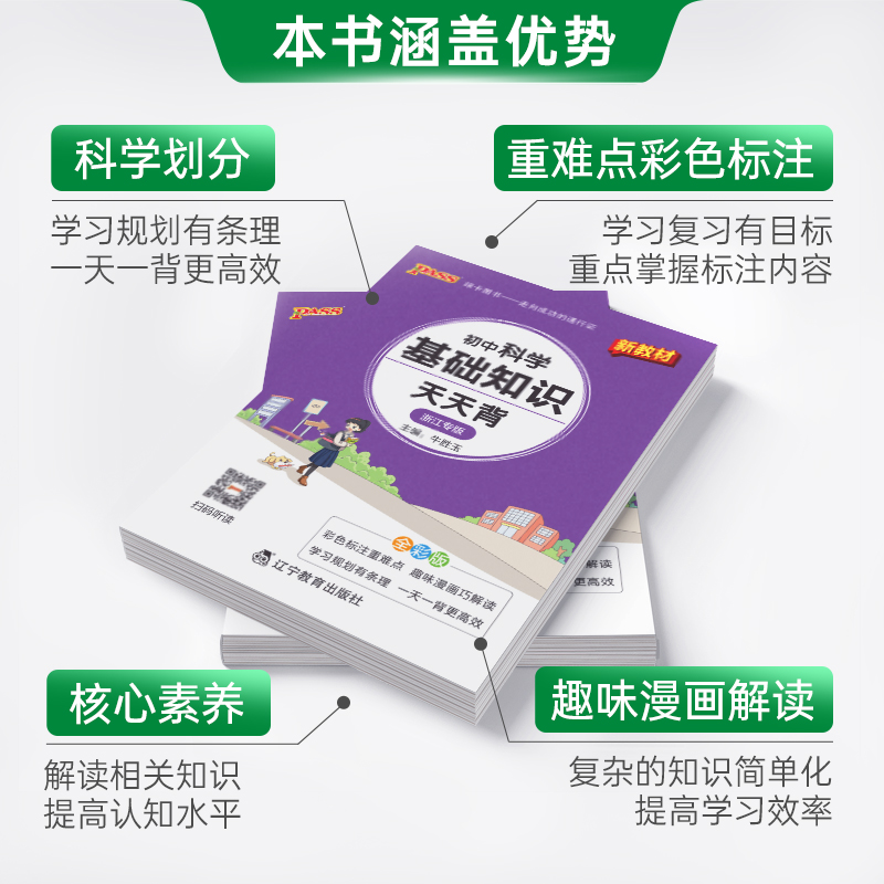浙江初中科学基础知识天天背新教材2026初中科学基础知识天天背 掌中宝口袋书初一初二初三中考复习手册 pass绿卡七八九年级浙教版