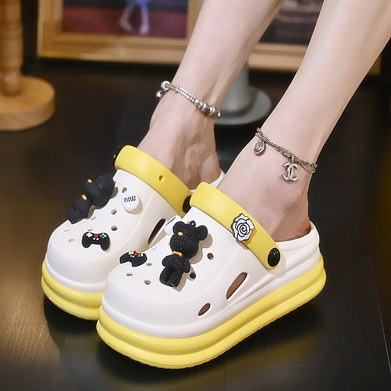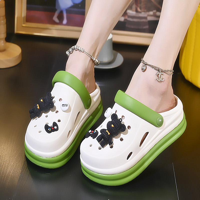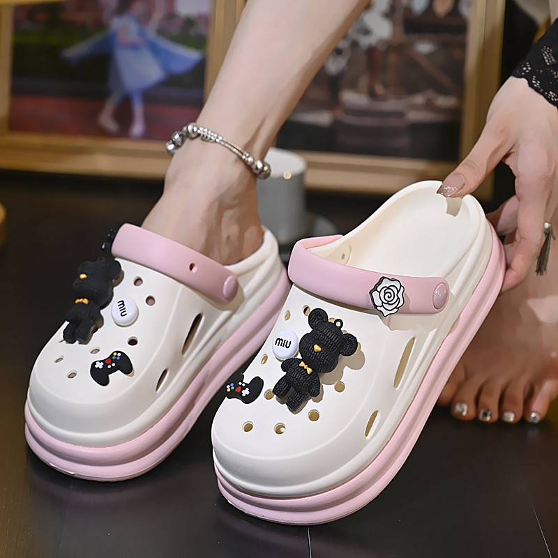 凉拖厚底洞洞卡通小熊防滑拖鞋 女士外穿可爱家居2024年新款 夏季