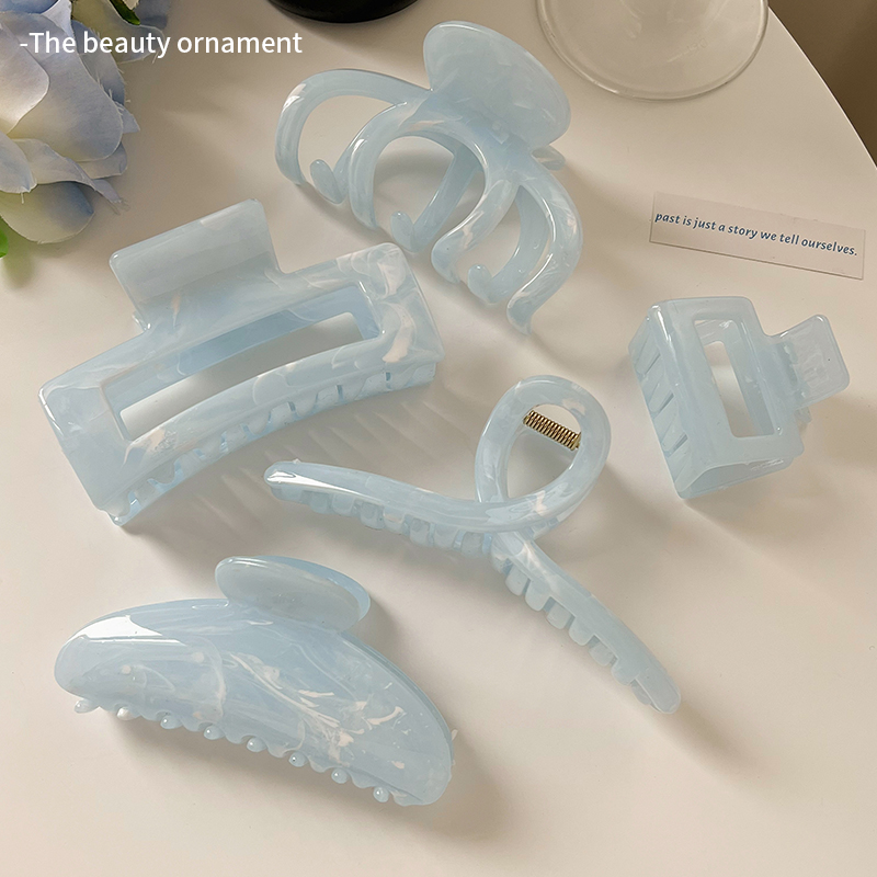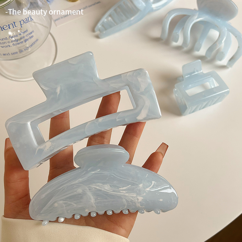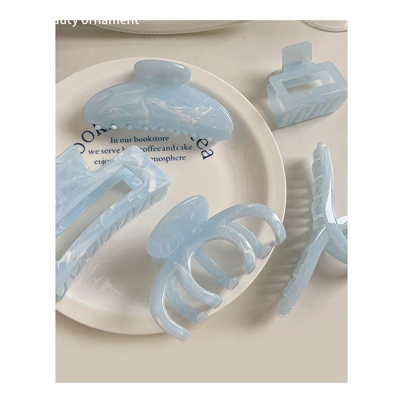 韩系少女奶油蓝大号抓夹女2024年新款 后脑勺盘发夹鲨鱼夹头饰发卡
