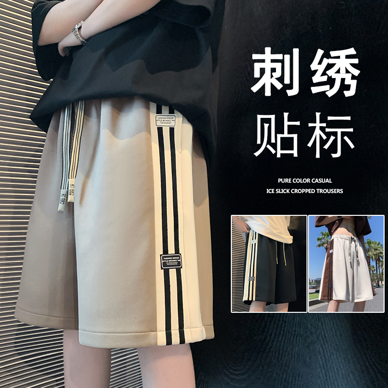 高街宽松篮球五分裤 条纹贴标运动短裤 ins潮牌休闲美式 薄款 男夏季