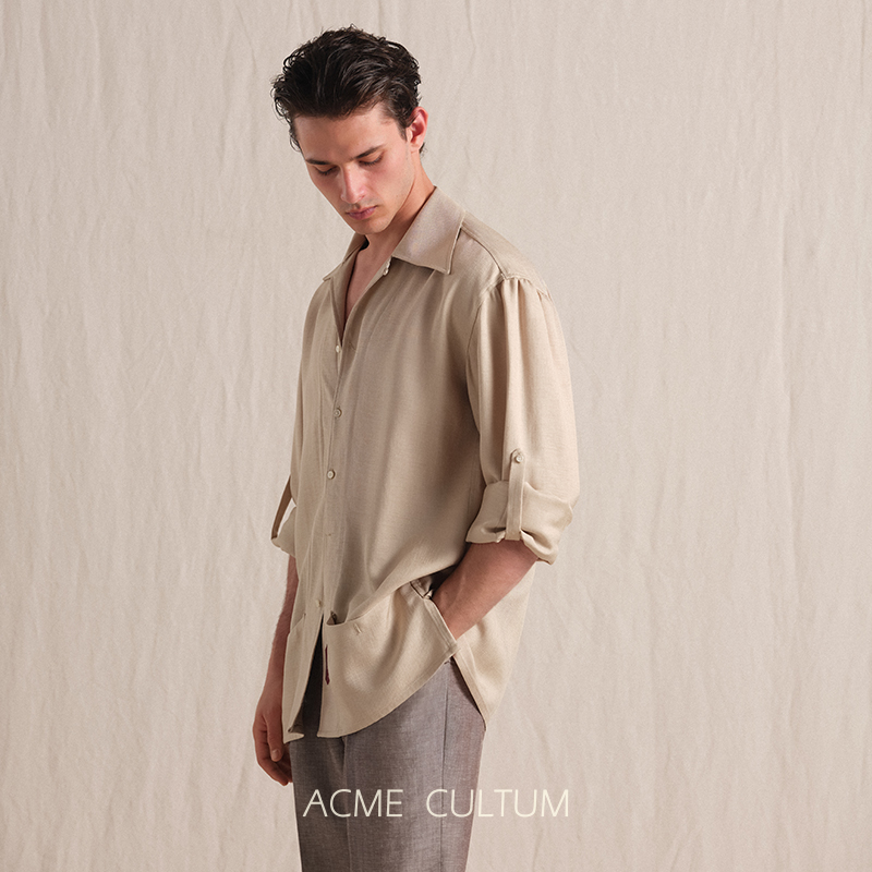衬衫 AC亚麻肌理宽松古巴领长袖 男外穿衬衣 100%醋酸凉感面料