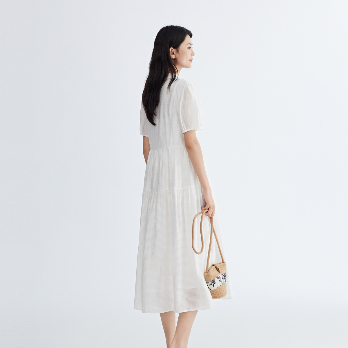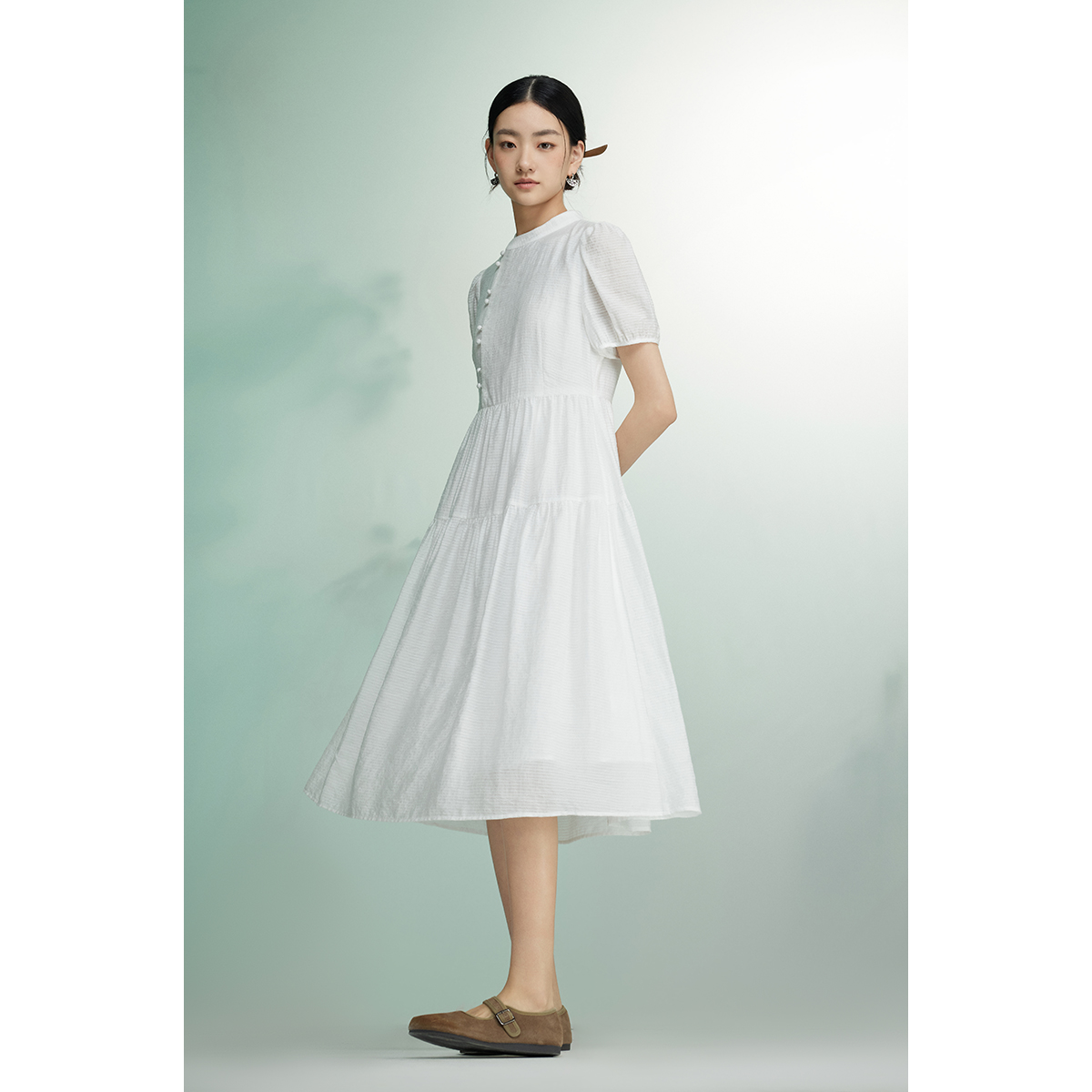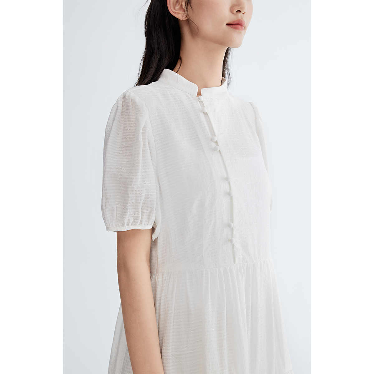 法式 新中式 连衣裙女时尚 新款 盘扣国风裙 女装 飞鸟和新酒白色短袖