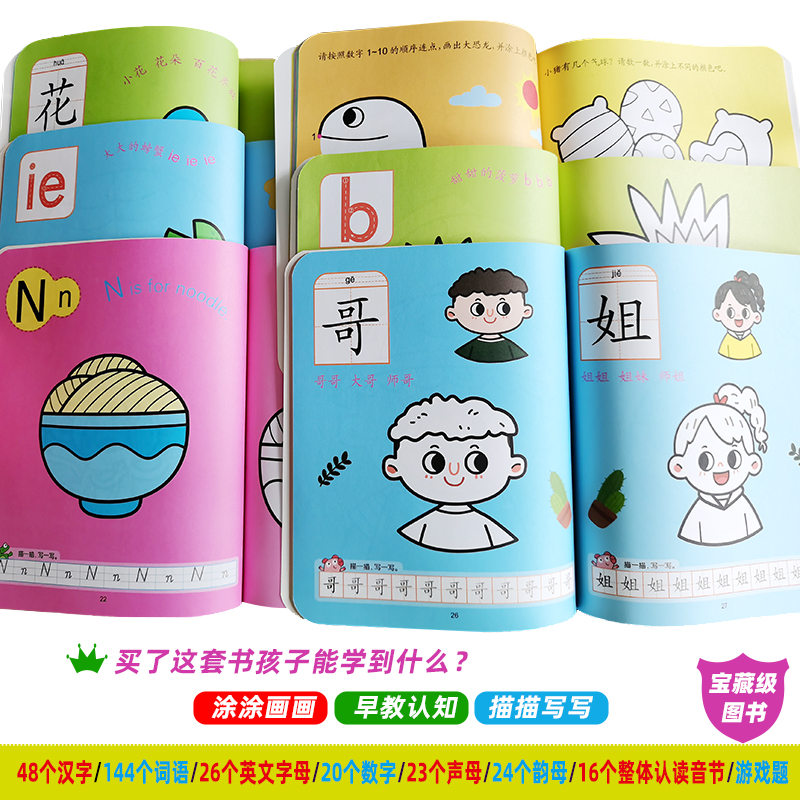 拼音汉字儿童画画本 宝宝涂色书简笔画大全 数学英文 6岁幼小衔接幼儿园大班孩子学习每日一练趣味启蒙早教认知练习册 边学边画