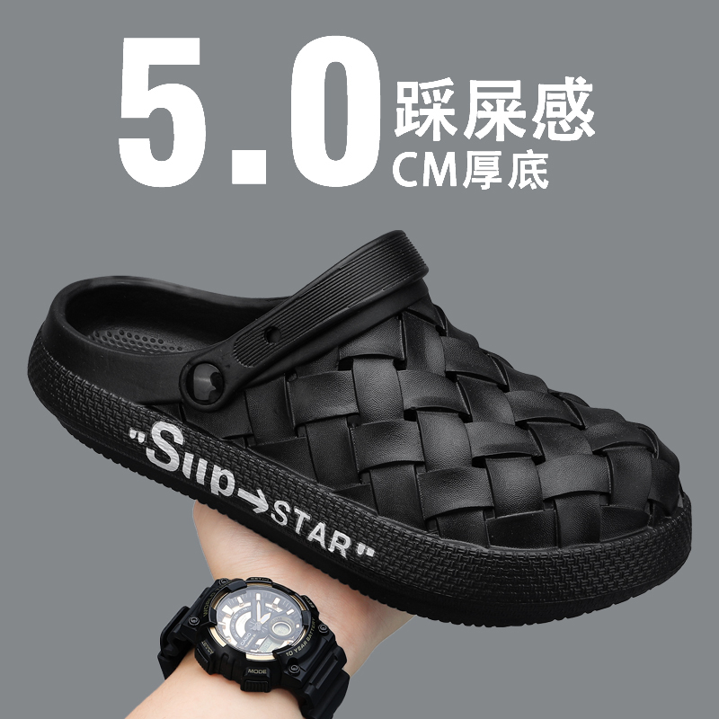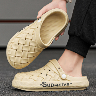 沙滩鞋 男防滑软底包头拖鞋 男外穿大码 休闲凉鞋 明星同款 夏季 洞洞鞋