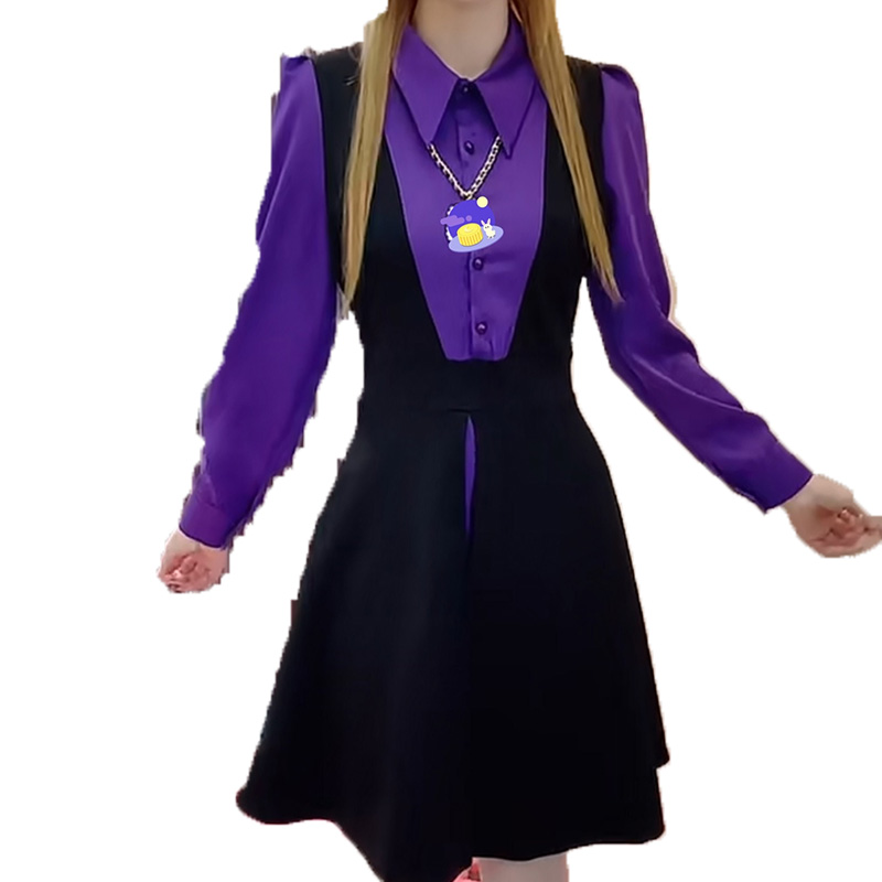 2025早春新款 假两件连衣裙女小个子收腰显瘦拼色翻领a字裙子 时尚