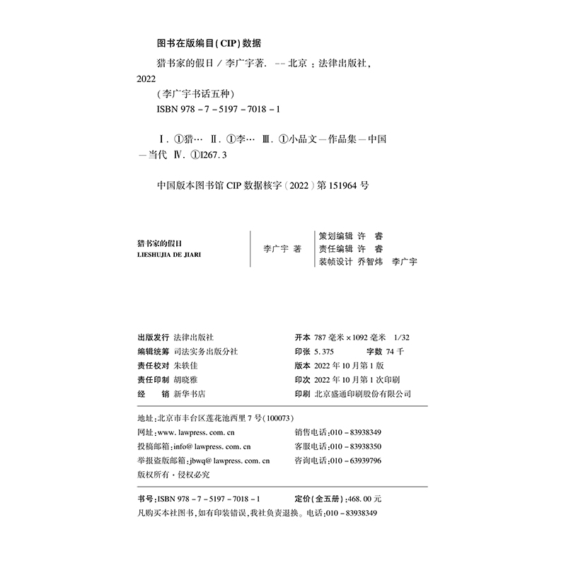李广宇书话五种 书籍 小品文法律社正版 行囊有书 签名版 普通版 香港书店鳞爪 著作文集 全5册 蠹鱼漫记 猎书家 香港寻书 假日