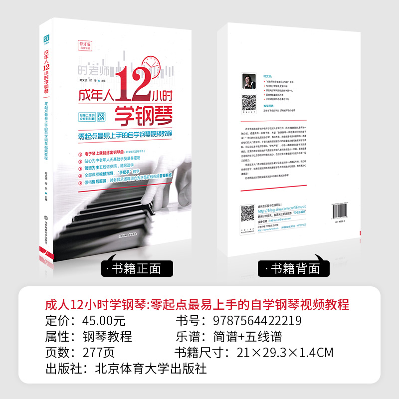 正版 成年人12小时学钢琴初学者入门零基础自学教程书成人0基础时老师教学书籍中老年人十二学会电子琴视频教材简谱五线谱曲谱琴谱