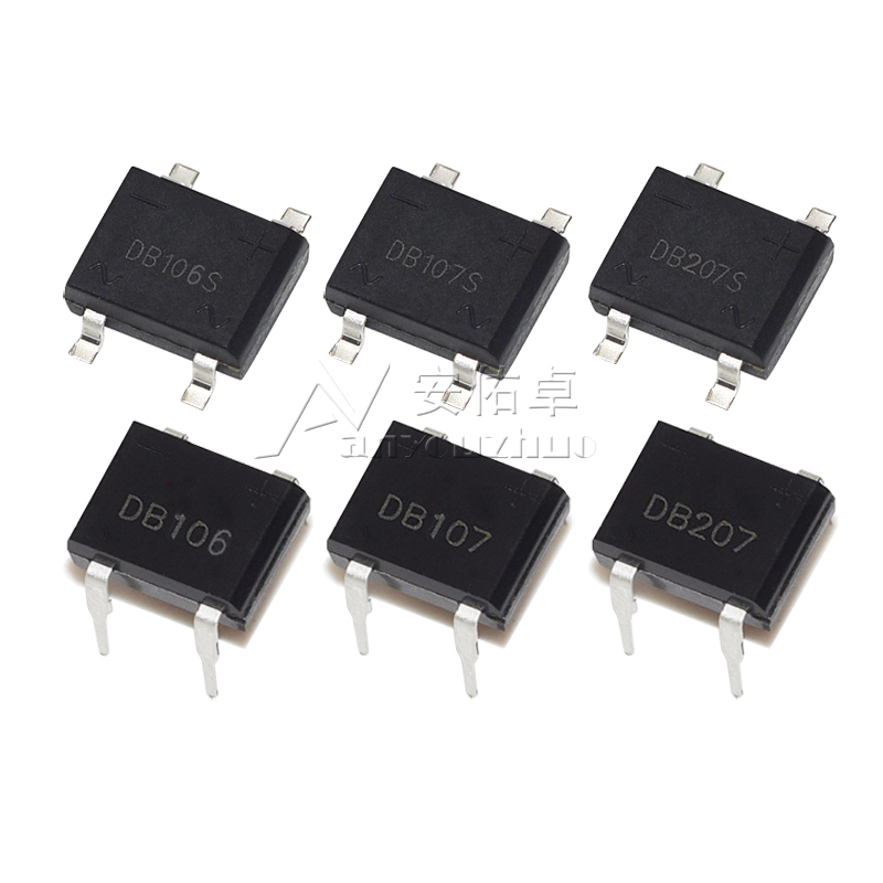 直插DB106 1A硅桥式 DB107 整流器整流桥 DB207S单相1000V 贴片