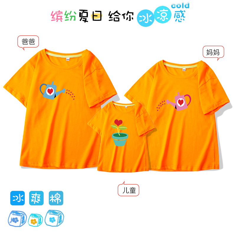 浇水树苗t恤纯棉儿童上衣班服 一家三口夏天短袖 创意亲子装 母女装