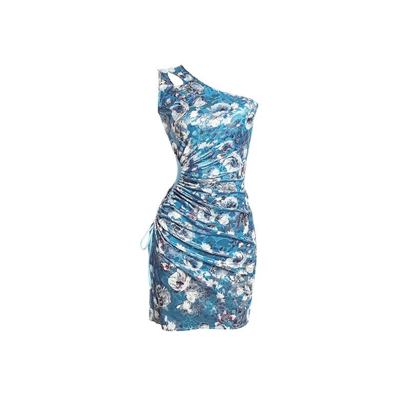 又见梵羽夏季 拉丁服国标舞服包臀开叉练习裙斜肩印花连衣裙DL736