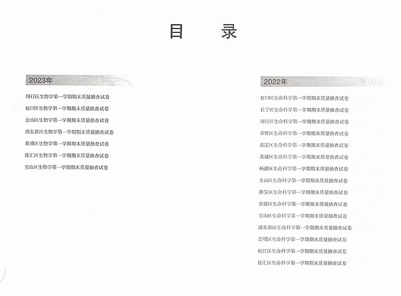 精编合订本高中期末冲刺复习提高测试卷 仅试卷 2021—2023年版 上海高考生物一模卷领先一步文化课强化训练2022年上海市高三高中
