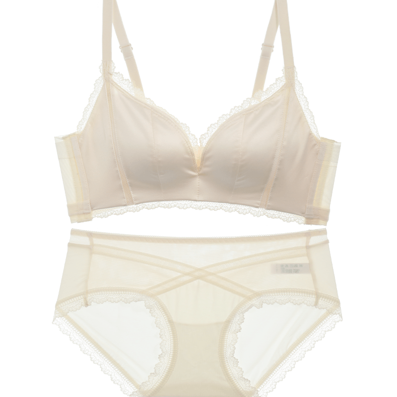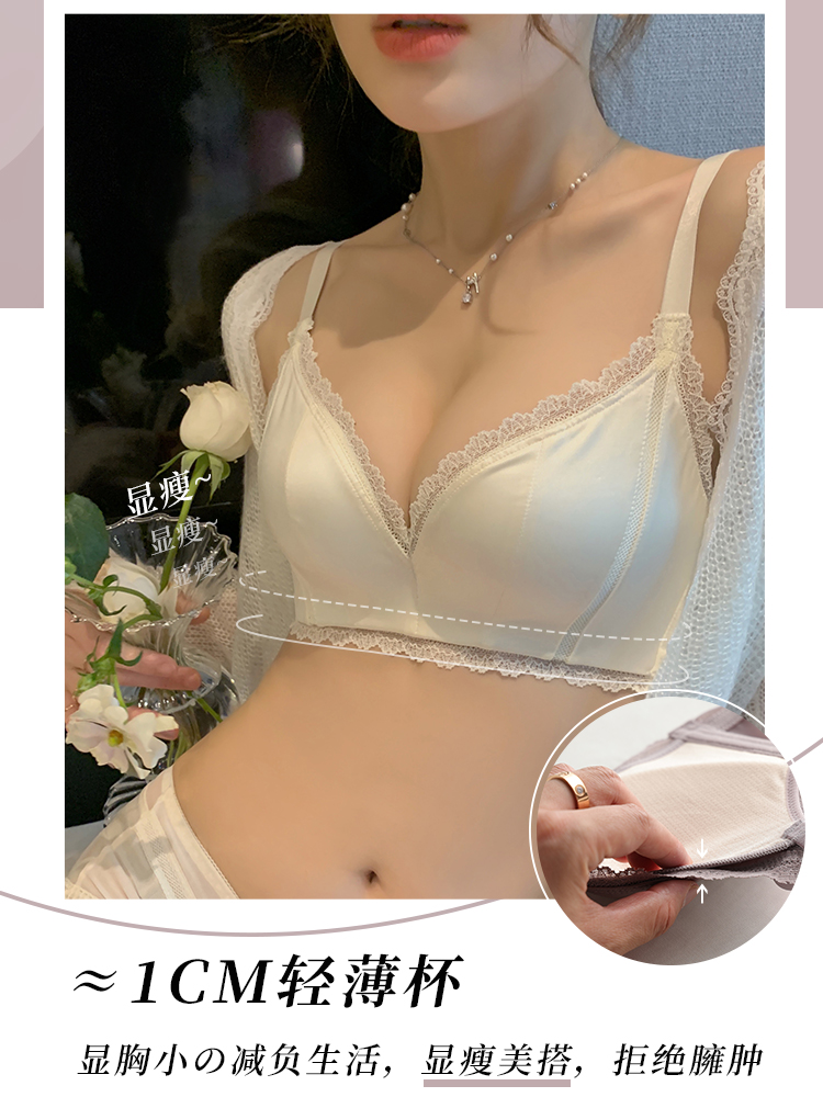 无痕内衣女薄款 显瘦显胸小聚拢收副乳防下垂缎面调整型文胸套装