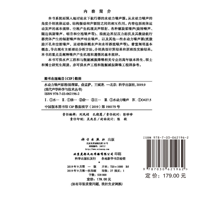 汤渭霖 社 水动力噪声原理 科学出版 王斌 俞孟萨 规划项目 十二五国家重点图书出版 现代声学科学与技术丛书 现货 正版