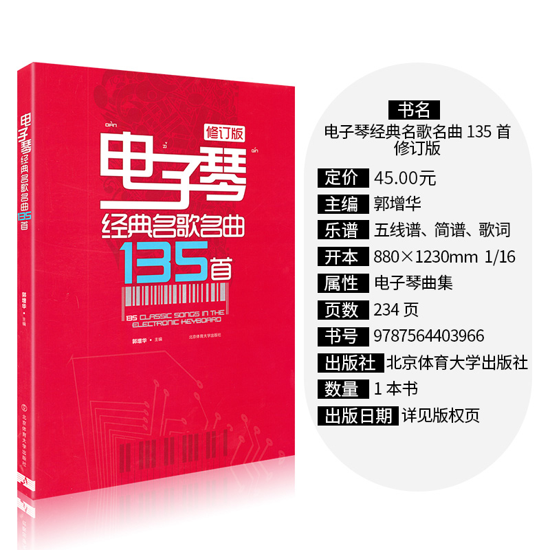 电子琴琴谱书流行歌曲电子琴简谱书流行歌曲电子琴曲谱集经典 名歌名曲135首五线谱音乐书籍歌谱教材程9787564403966