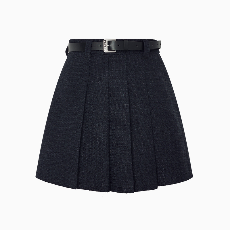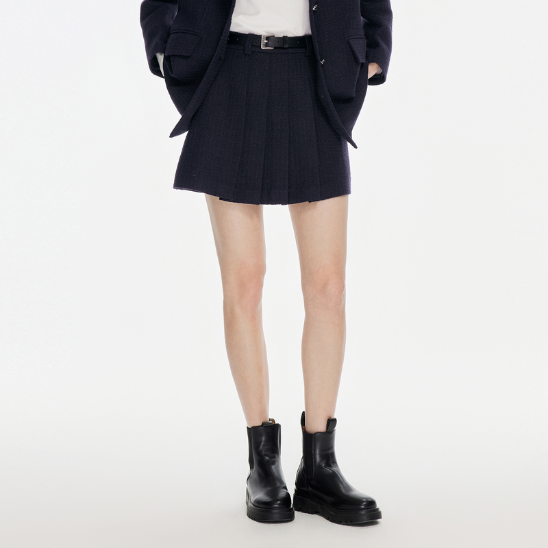 飘蕾藏青色百褶半身裙女秋季 高腰遮胯显瘦A字小个子短裙 新款