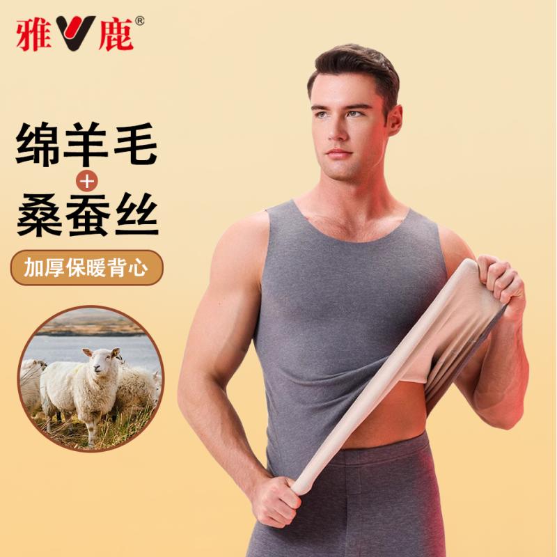 打底上衣羊毛贴身 秋款 雅鹿德绒保暖男士 背心羊绒蚕丝加绒无痕男款