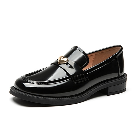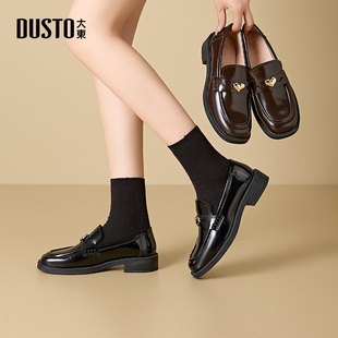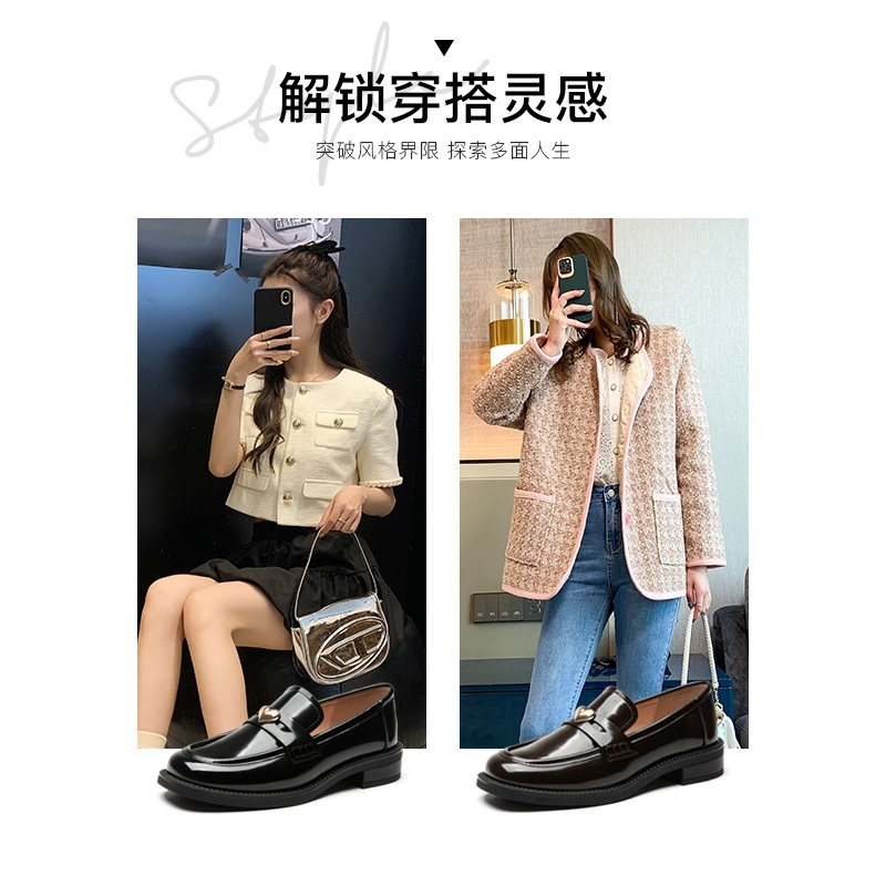 黑色厚底一脚蹬小皮鞋 大东英伦乐福鞋 漆皮单鞋 百搭女鞋 女2025新款