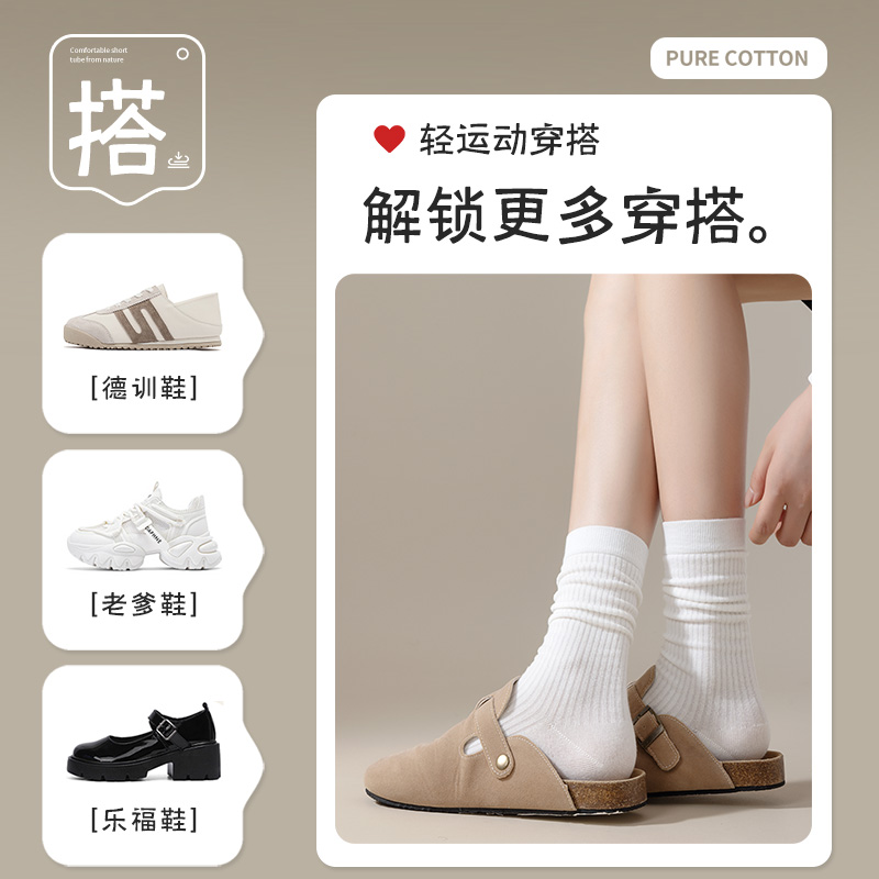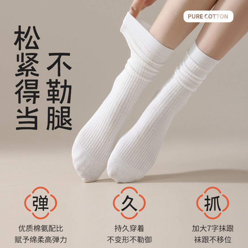 秋冬长袜 2024新款 灰色袜子女堆堆袜春秋季 纯棉无骨中筒袜配勃肯鞋