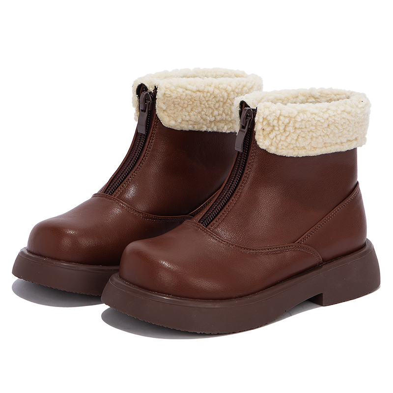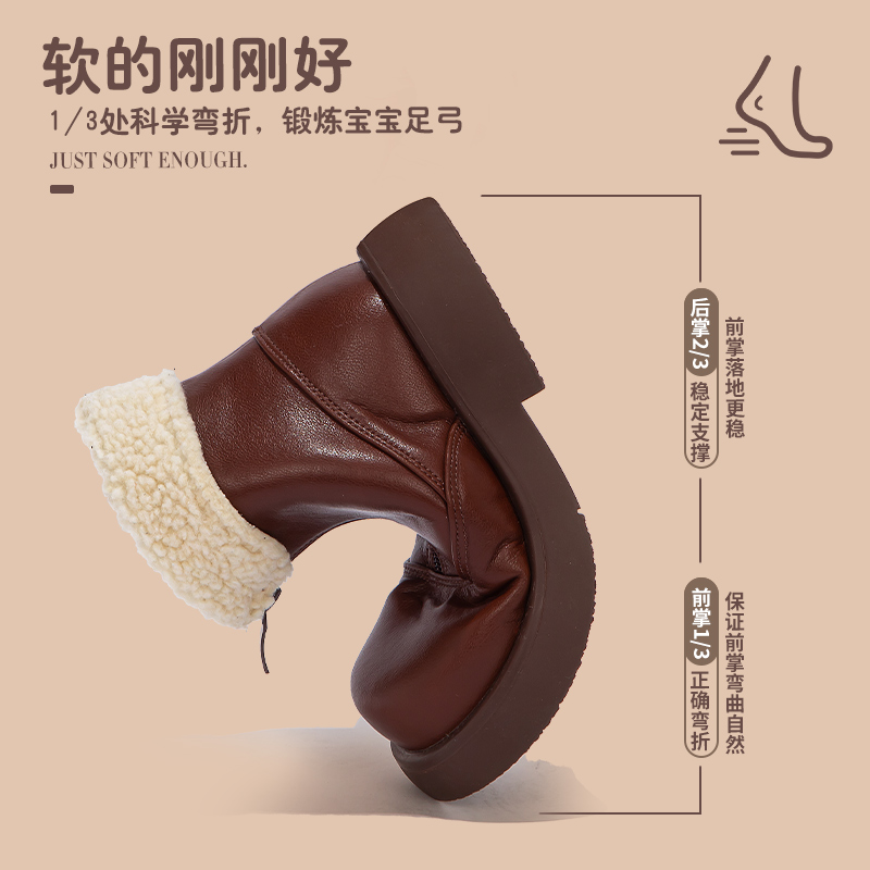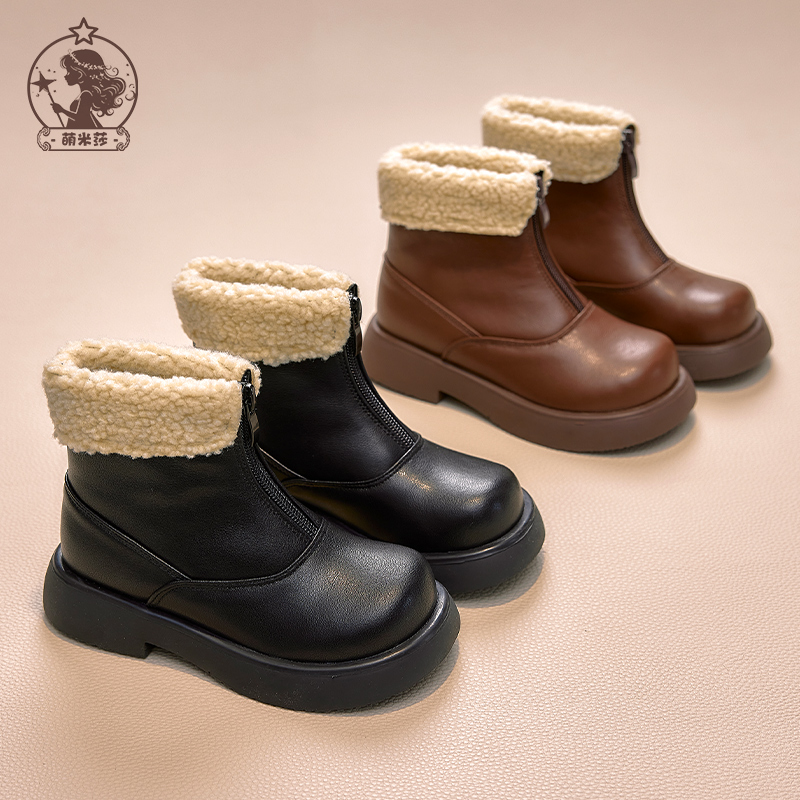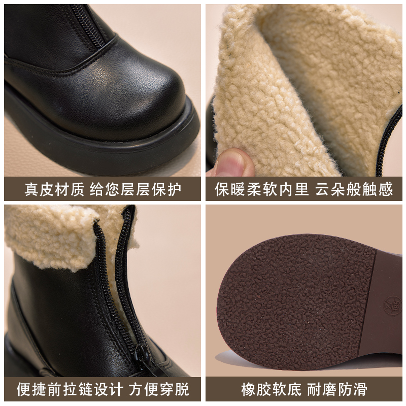 女孩马丁靴 宝宝加绒二棉鞋 女童靴子儿童真皮公主短靴2025新款 冬季