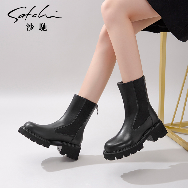 星期六潮流厚底烟筒靴秋冬英伦风切尔西靴女袜靴短靴 清仓短靴