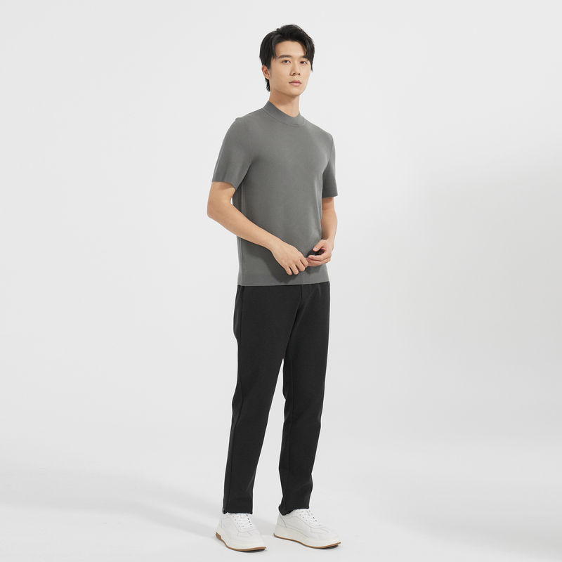 男款 保暖内搭针织衫 打底衫 GV真维斯黑色毛衣男秋冬加绒圆领男士