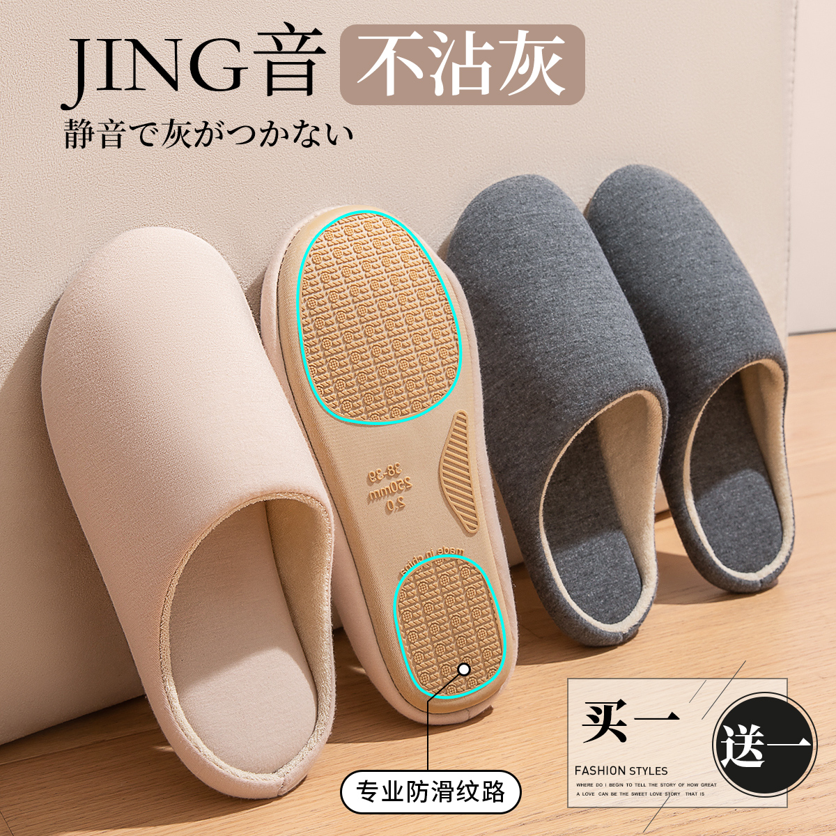 吸汗软底木地板拖鞋 四季 男 女室内家居防滑情侣日式 买1送1静音拖鞋