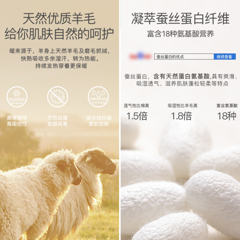 保暖套装 俞兆林7A抗菌羊绒蚕丝贴片男女同款 香菇双十一