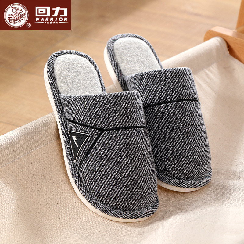 轻便 保暖秋冬家居情侣简约毛拖鞋 回力棉拖鞋 男室内软底地板拖鞋