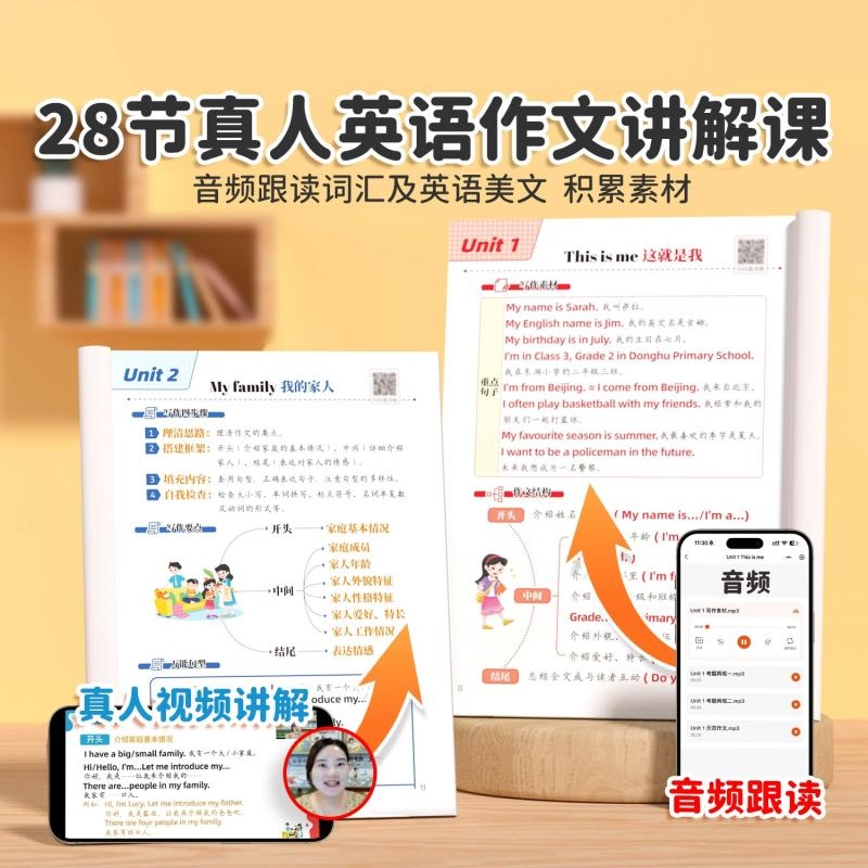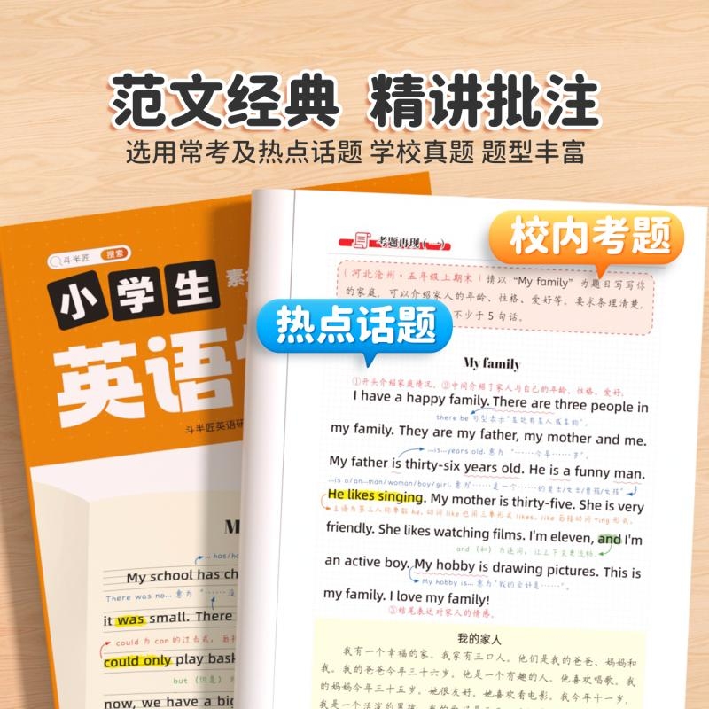 同步教材素材积累满分作文语法大全 小学英语作文示范大全带音频小学生英语阅读写作技巧作文入门四五六三年级上册人教版 斗半匠