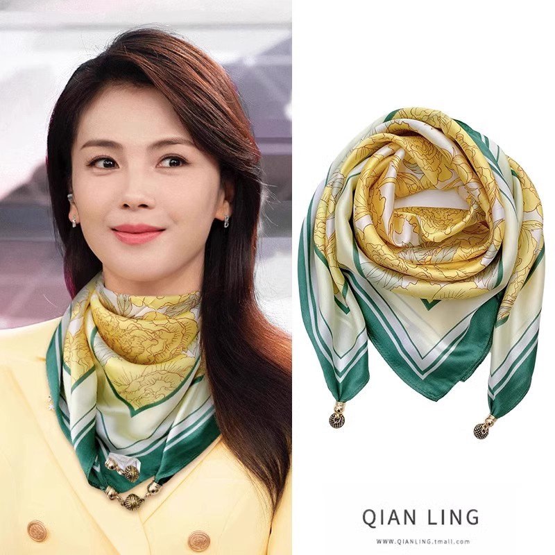 2025新款 护颈方巾三角系脖子高级感围脖 磁吸扣小丝巾女春秋冬薄款