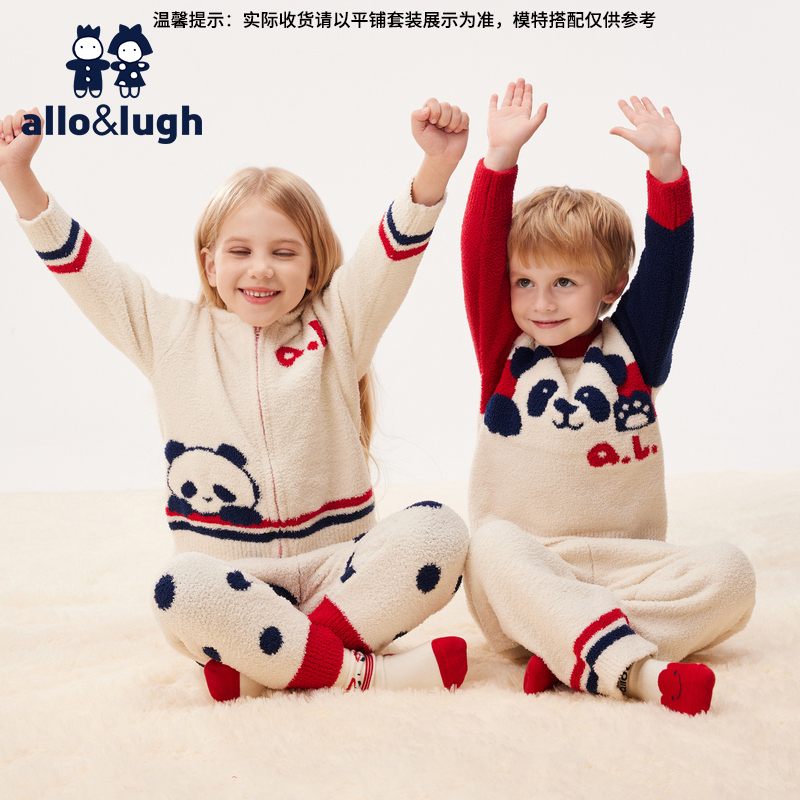 男童女童保暖家居服套装 阿路和如睡衣2025秋冬儿童装 半边绒