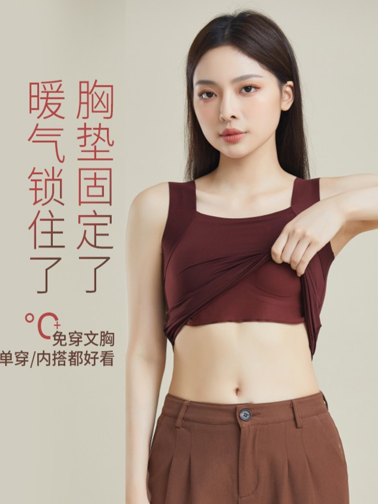 2025秋新款 工字外穿吊带背心女内搭带胸垫免文胸打底内衣夏上衣