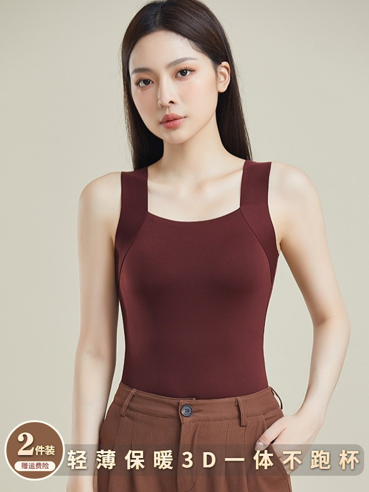 方领背心女外穿2025新吊带带胸垫内搭遮副乳工字宽肩打底无袖 上衣