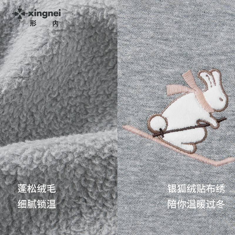 保暖家居服D 睡衣套装 MIIOW 猫人睡裙女秋冬宽松半边绒加绒加厚款