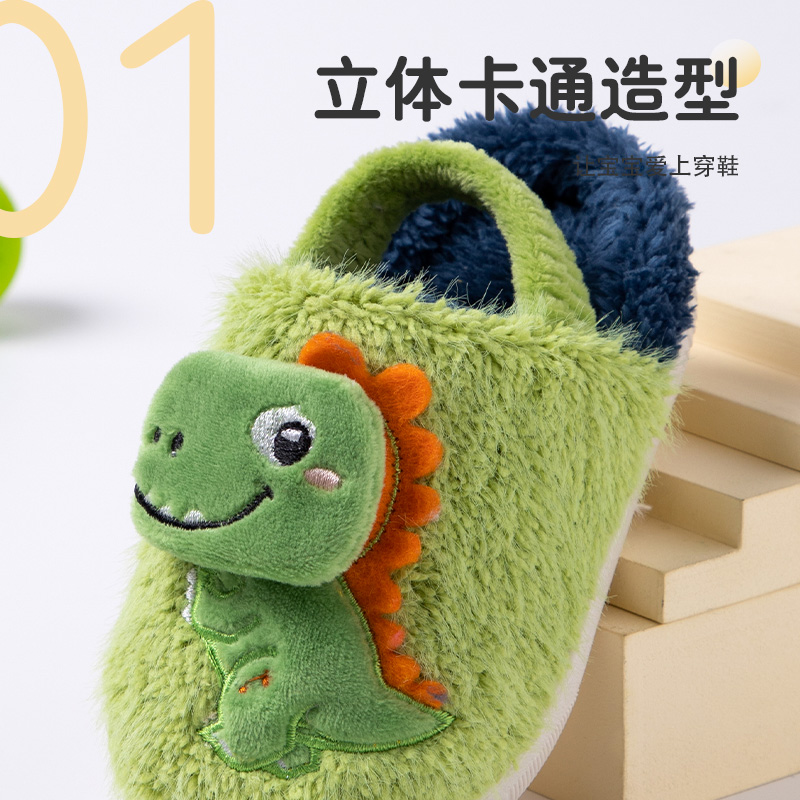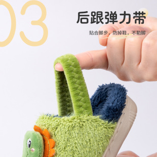 儿童棉拖鞋 绑带毛绒软底室内防滑3岁宝宝中小童女幼儿园 男孩冬季